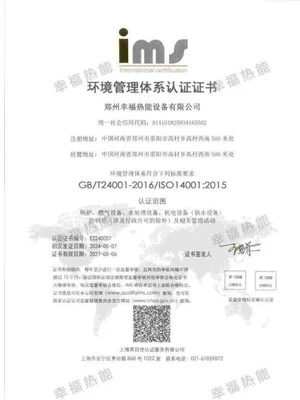 环境管理体系认证证书